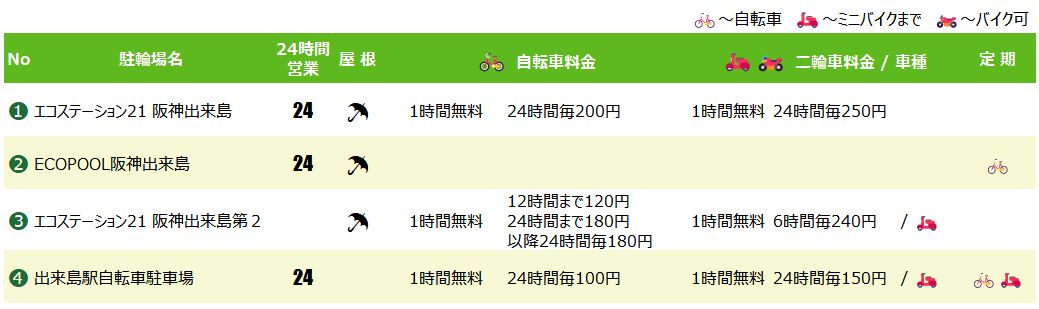 出来島駅の駐輪場マップ&料金リスト
