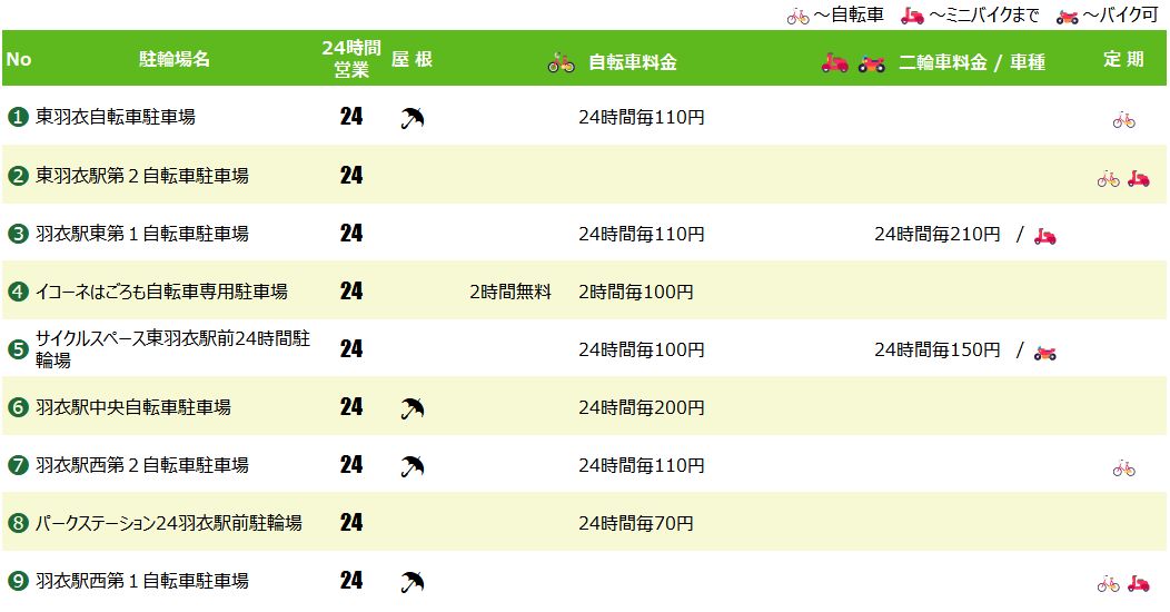 羽衣駅・東羽衣駅の駐輪場マップ&料金リスト