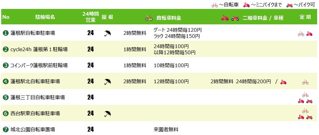 蓮根駅の駐輪場マップ&料金リスト