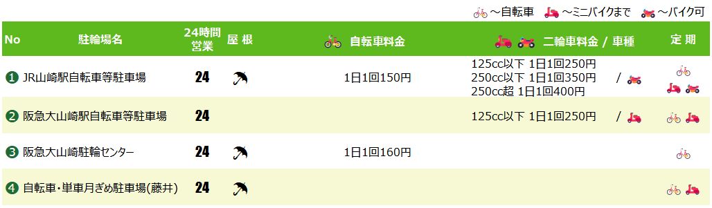 JR山崎駅・大山崎駅の駐輪場マップ&料金リスト