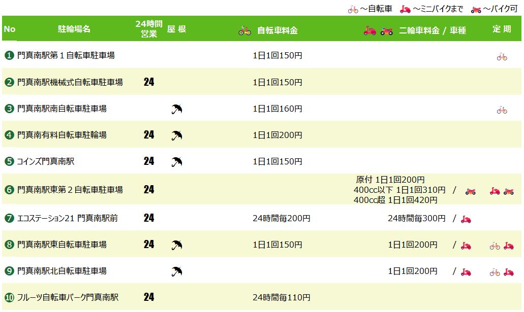 門真南駅の周辺で自転車や原付・バイクの一時/定期利用ができる駐輪場を紹介します。
