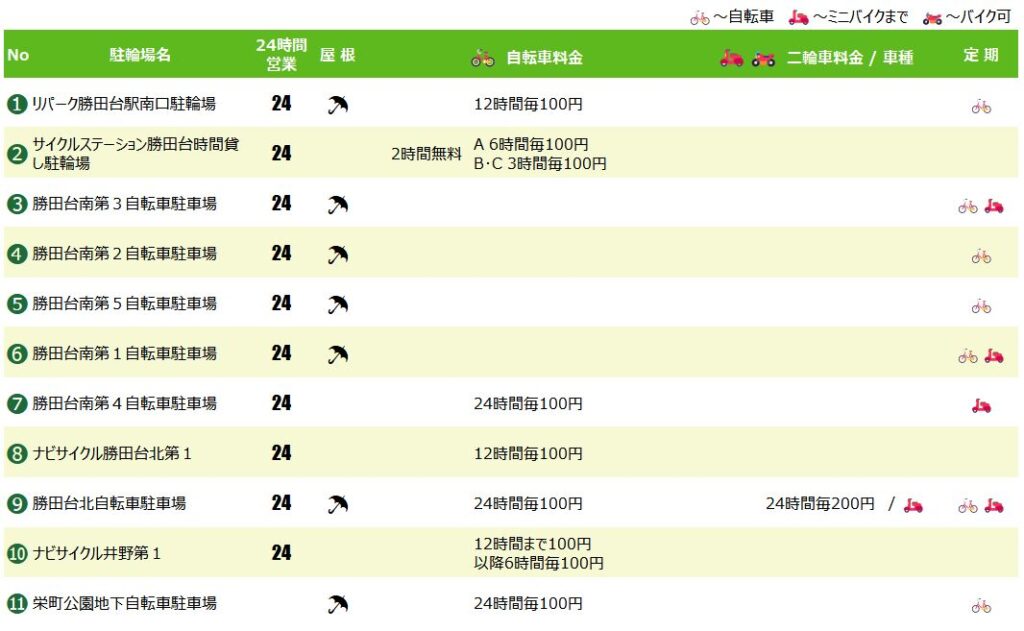 勝田台駅の周辺で自転車や原付・バイクの一時/定期利用ができる駐輪場を紹介します。