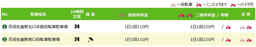 京成佐倉駅の駐輪場マップ&料金リスト
