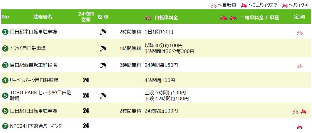 目白駅の周辺で自転車や原付・バイクの一時/定期利用ができる駐輪場を紹介します。