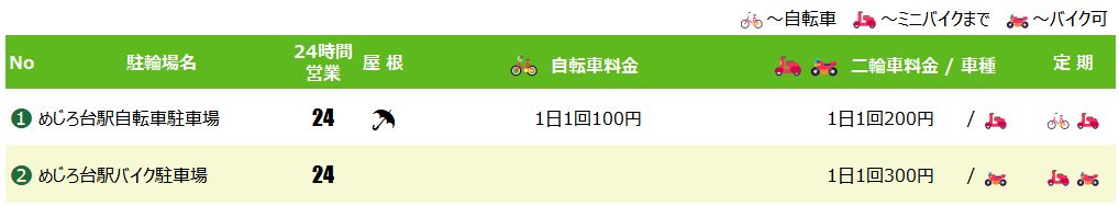 めじろ台駅の駐輪場マップ&料金リスト
