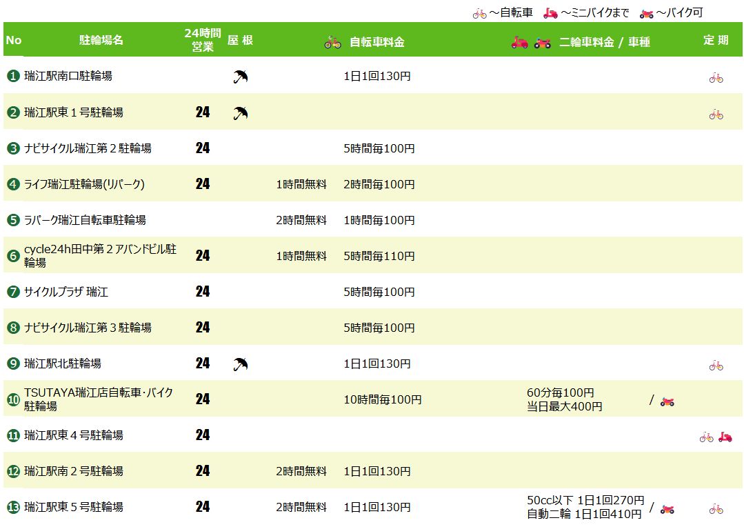 瑞江駅の駐輪場マップ&料金リスト