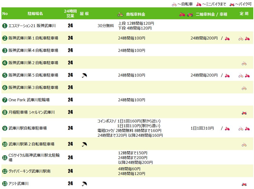 武庫川駅の周辺で自転車や原付・バイクの一時/定期利用ができる駐輪場を紹介します。
