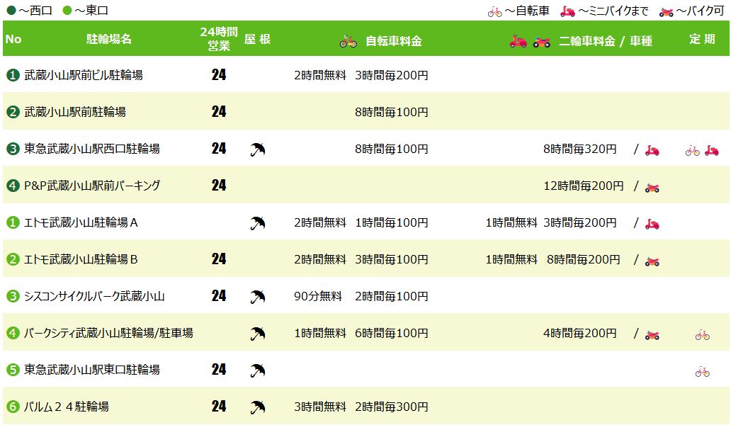 | ⌚ 利用時間 | 自転車5:00~25:00 原付・バイク8:30~22:00 |