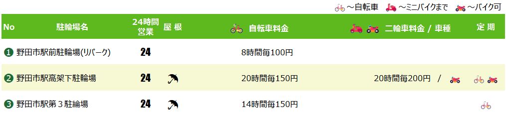 野田市駅の駐輪場マップ&料金リスト