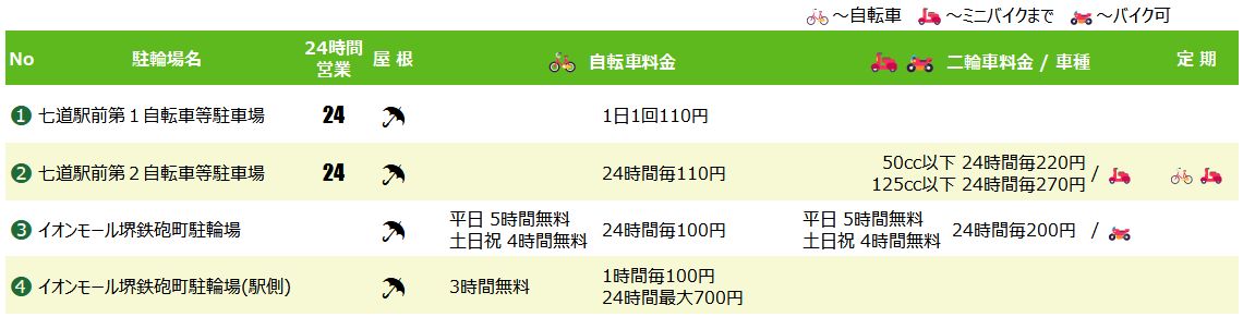七道駅の駐輪場マップ&料金リスト
