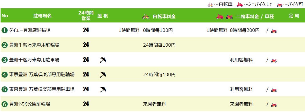 新豊洲駅・豊洲市場の自転車・原付バイク駐輪場マップガイド!バイク可や無料置き場も調査! | ちゃりピー