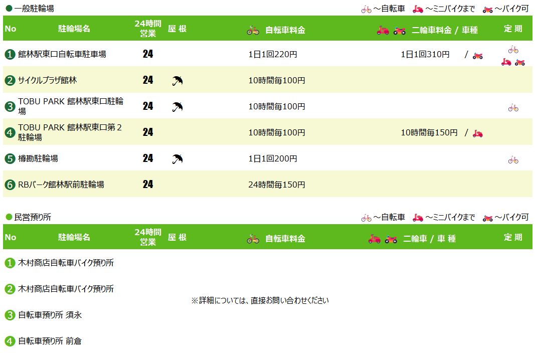 館林駅の周辺で自転車や原付・バイクの一時/定期利用ができる駐輪場を紹介します。