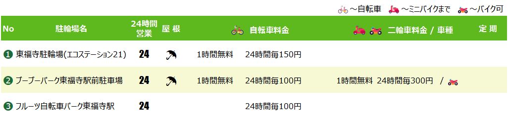 東福寺駅の駐輪場マップ&料金リスト